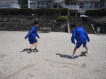 元気いっぱい 写真はお昼休みの光景です。グラウンドに繰り出し、お友達と一緒にサッカーをしたりバレーボールをしたり、体中のエネルギーを発散して楽しそうでし…