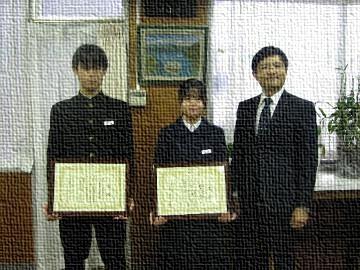 表彰 税の作文で、本校から3年生のMKくんとSAさんが表彰されました。二人は、1年時に続き、2度目の受賞です。役員のF様が来校し、直接賞状を渡し…