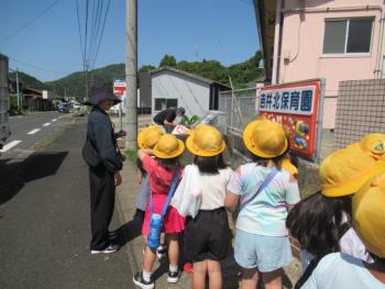 2年生まち探検 生活科の学習の一環として、2年生がまち探検第一段に出かけました。学校の近くにある施設(保育園・駐在所・郵便局)や史跡などの目印などを見て回り…