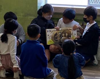 交流活動 読み語り 読書の秋です。本校ボランティア、きらりの会の方に読み聞かせをしていただいていますが、今日、教室をのぞくと、3年生が1年生に読み語りをしていま…