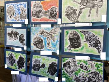 芸術の秋 今日見つけた秋は、”芸術の秋”です。大野小学校のいたるところには、子どもたちの作品が掲示されています。3年生の廊下や掲示板には、版画の作品が…
