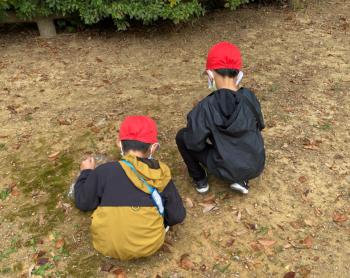 秋さがし 一年生 秋が深まってきました。今日は、一年生が生活科の学習で、秋をさがしに行きました。場所は、大智庵城公園と瀬戸越の園です。子どもたちは、どんぐりや…