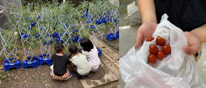 大きく育ったね! 2年生が生活科の学習でミニトマトを育てています。すくすくと成長し、花が咲き、緑の小さな実が生り、次第に赤くなりました。これから夏休みにかけて…