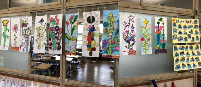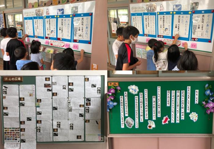 環境でも育む! 大野小学校に、たくさんの掲示板があります。各教室はもちろん、階段の踊り場など、各学年の児童の作品や季節に関するもの、本校が取り組んでいる読解…