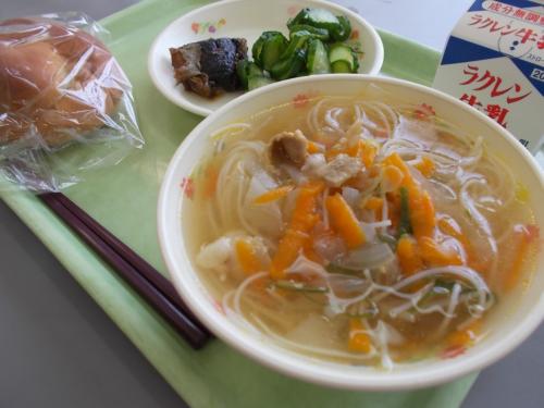 6/3(月)今日の給食 牛乳 はちみつパン ビーフン汁 アジのレモンソースかけ 塩もみきゅうり