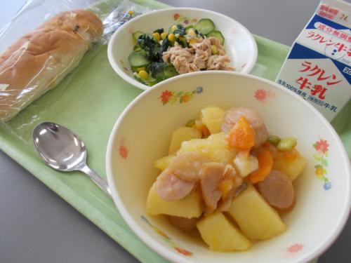 5/9(木)今日の給食 牛乳 パインパン じゃが芋のウインナー煮