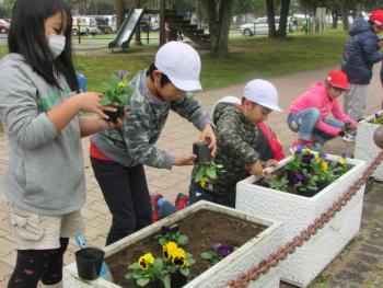 美し化プロジェクト 2年生が佐世保市の事業「美し化プロジェクト」に参加して、パールシー前遊歩道の花壇に、ビオラ(花)の苗を植えました。市役所の方や地域の方に教え…