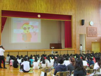 親子メディア学習会 長崎県メディア安全指導員の先生を招いて、メディア学習会を開催しました。雨天の中でしたが、3年生以上の児童に加えて保護者の方も100名あまり…