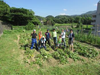 いも畑の草取り 「おやじの会」のお父さん、お母さん方が、いも畑の草取りをしてくださいました。8時からはじめたのですが大変暑い中で汗をびっしょりかきながらの作…
