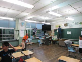 PTA親子清掃 9月からの学習にむけて、PTA親子清掃を行いました。保護者、子どもたち、先生方あわせ150人あまりで、蛍光灯や扇風機、窓、トイレの換気扇な…