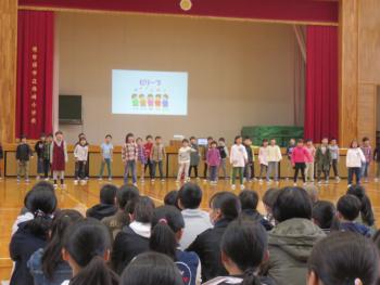 音楽集会 今朝の活動は、音楽集会を行いました。3年生の発表の順番で「ビリーブ」という歌を聞かせてくれました。歌詞の途中には、手話も入れながら発表でし…