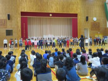 音楽朝会 今朝の活動は、音楽朝会でした。