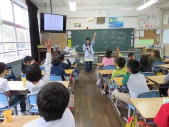 野菜を食べよう 給食の時間に栄養教諭から食育の指導がありました。今回の指導のテーマは、「野菜を食べよう」でした。