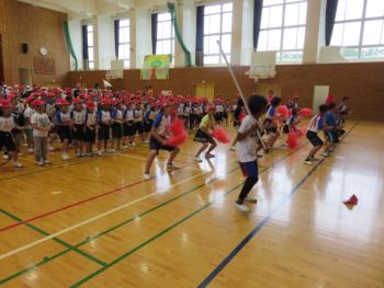 全校児童が体育館に集まり、校長先生からの話を聞きました。思いやりや優しさの育ち、みんなと協力して活動でき…