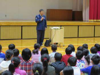 交通安全教室 今日は全学年で交通安全教室を行いました。警察の方からのお話をきいたりや道路歩行の仕方のDVDをみたりしながら、交通ルールについて学びました。…