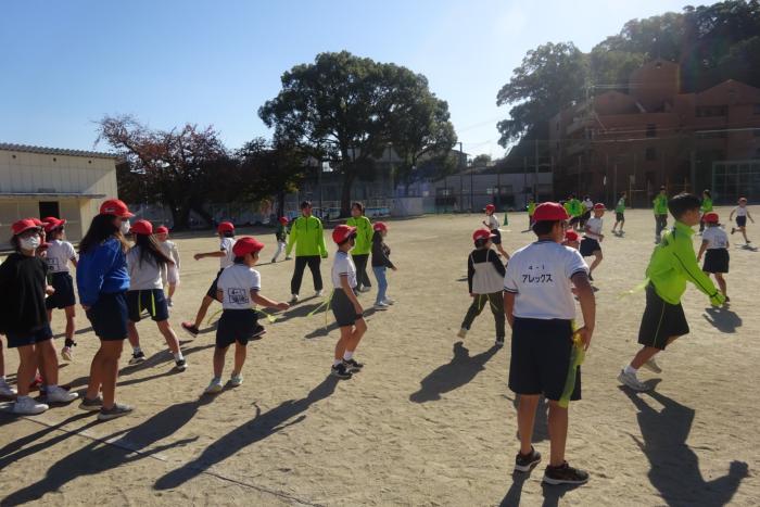 小中合同たてわり遊び 今日の5時間目はさわやかな秋空のもとで、小中合同たてわり遊びを実施しました。中学生による企画、運営のもと、今回は「しっぽとりおに」を実施しま…