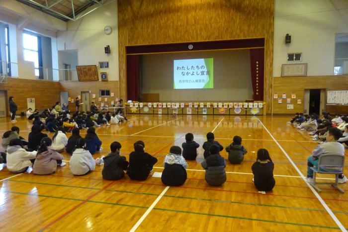 人権集会 今日の1時間目は人権集会でした。一人一人を大切にする心を確かめ合い、誰もが楽しく学校生活を送ることをねらいとして実施しました。金比良小の仲良…