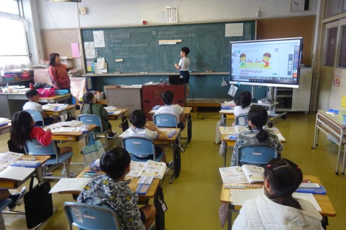 英語の学習 今日はALTの先生の来校日でした。2年生ではポケモンを教材にして、数や色などモニターに映し出されたものを英語で答える学習をしていました。子ど…