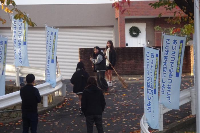 嬉しい光景 昨日の放課後、児童玄関の方から音がするので、行ってみたところ、6年生の女子児童4人が、落ち葉掃除をしてくれていました。担任に話を聞いたところ…