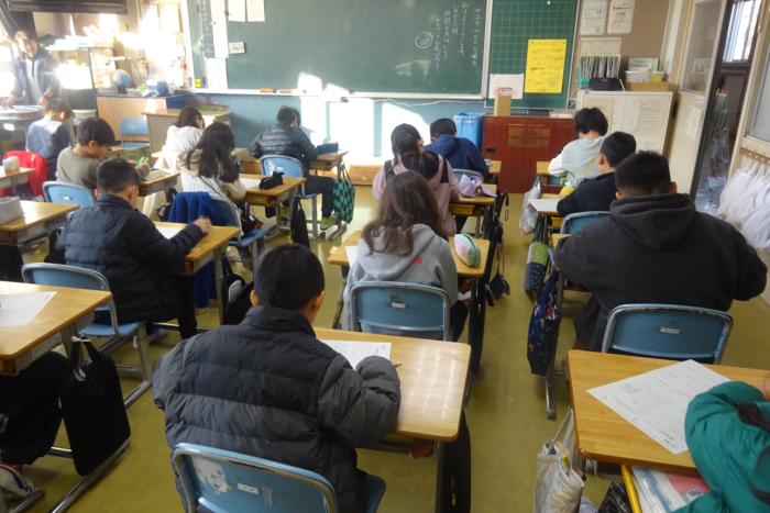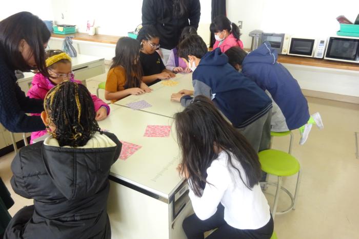 エレメンタリースクールとの交流 3年生は3校時から給食時間まで、お隣のエレメンタリースクールとの交流会を実施しました。「折り紙」「書道」「音楽」の3グループに分かれ、交流を…