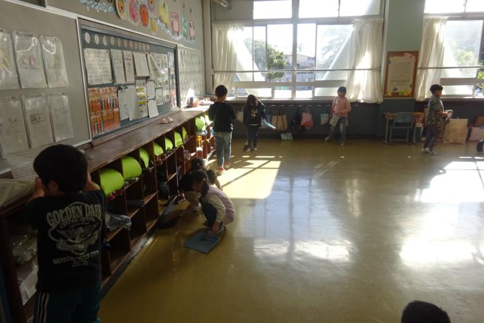 大掃除 今日は2学期の終業式前日ということで、業間の時間から5校時までは大掃除を行いました。平素手が行き届かない棚やロッカー、歯ブラシコップ棚なども…