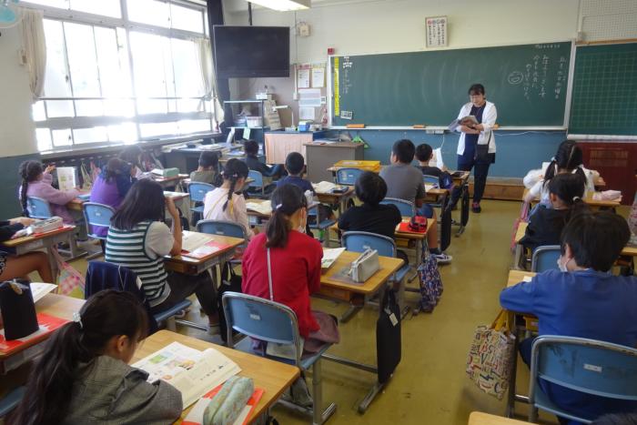ひらがなの学習 1年生は、ひらがな「え」の書き方を学んでいました。真剣な表情で丁寧に書こうとしている様子がよく伝わってきました。正しい書き方をしっかり学んで…