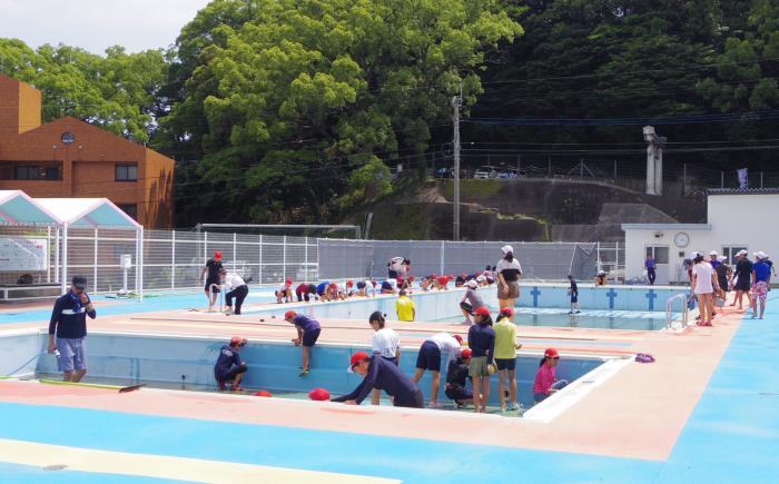 自分たちの手できれいにしたプールで楽しく泳ぎ初めができました。
