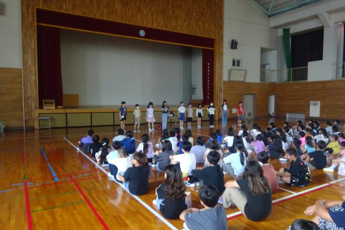 歯の健康集会 保健委員会の子どもたちが業間の時間に歯の健康集会を開いてくれました。絵本の読み聞かせや歯の健康にかかるクイズなどをしてくれました。読み聞かせ…