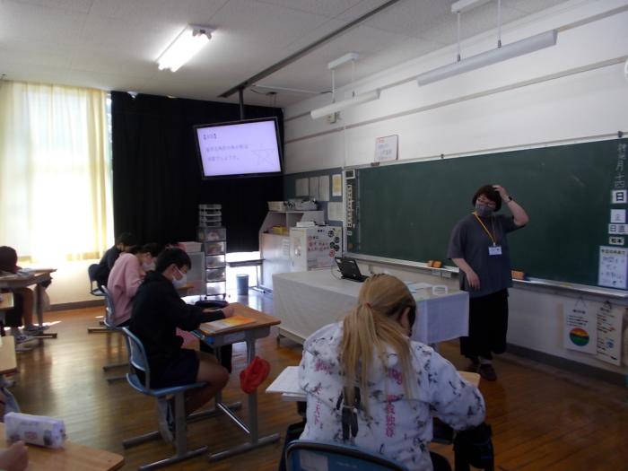 算数乗り入れ授業(6年) 今日は吉井中学校から数学の先生が来校され、小学校6年生に算数の授業をしていただきました。小学校で学ぶ知識を使って解き明かす問題を出していただ…