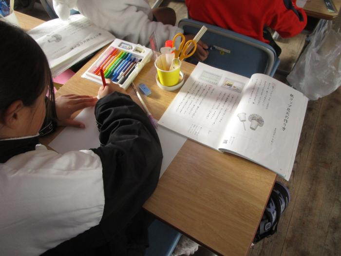 2年生の皆さんが楽しそうに工作をしています。よく見ると・・・説明文を読みながら、順序に気をつけて作っているようです。よく読まないと、正しく作ることができないので、夢中でした。