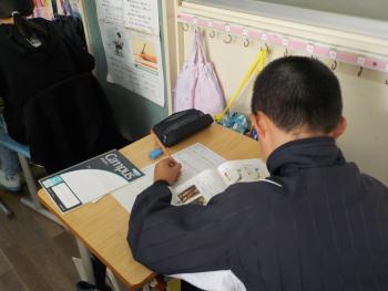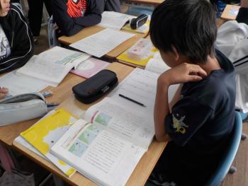 5年生が、国語の説明文「固有種が教えてくれること」について学習をしました。まず、筆者が、それぞれの資料を用いた理由を考えることになりました。一人一人自分なりの推論をワークシートに書いていました。その後、グループの人たちと対話を行い、考えの交流を図りました。熱心に学習に取り組んでいる姿が印象的でした。