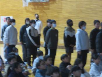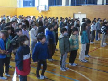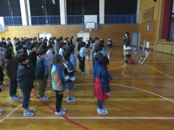 〇今日は、今年一番の寒さでしたが子ども達はこの集会に真剣に臨んでいました。