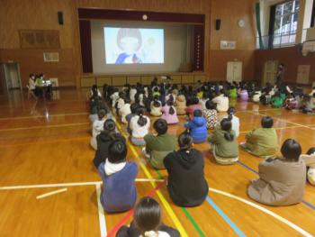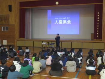 12月4日 世界人権週間の始まりの日です。〇本校では、全校児童が体育館に集まり、人権集会を行いました。