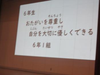 〇各学級の人権目標も発表しました。下の写真は6年生の人権目標の言葉です。