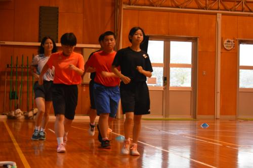 | 長距離を走る準備として、まずは全員で速歩をします。姿勢や足の出し方など、じっくり確認しながら歩きます。 |
