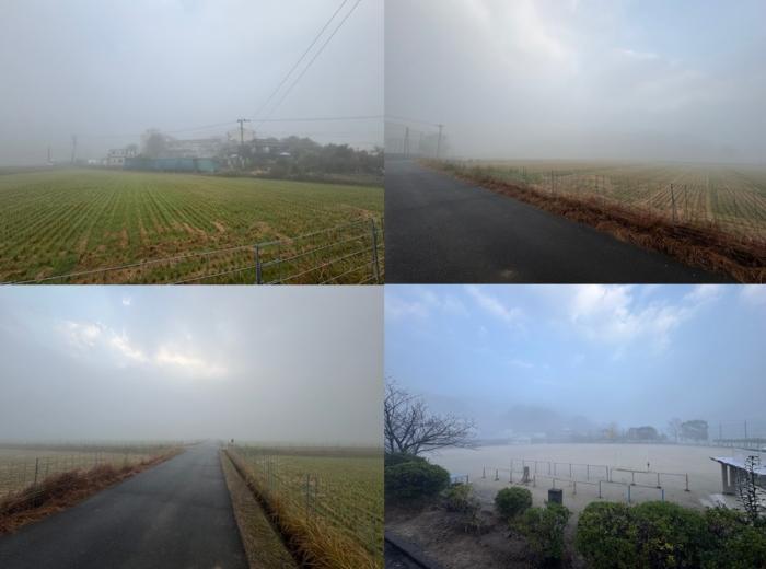 霧に包まれて 今朝、江上小学校付近は濃い霧に包まれていました。国道からは学校が見えず、非常に視界が悪い朝でした。子供たちが関係する事故が起きなければと心配…