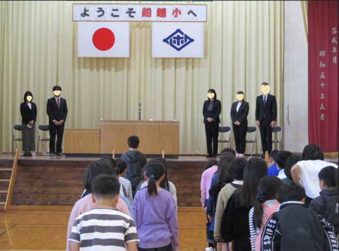 船越小学校 入学式 桜の花びらが舞い踊る中の入学式。