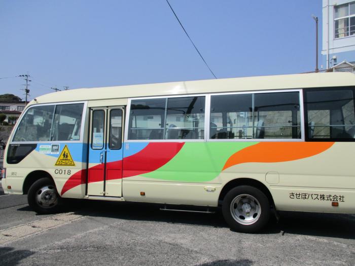 スクールバス 9日(水)の児童下校時、1年担任と校長で、庵浦、俵が浦方面のスクールバスに乗り、バス下校の確認に行ってきました。
