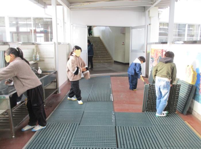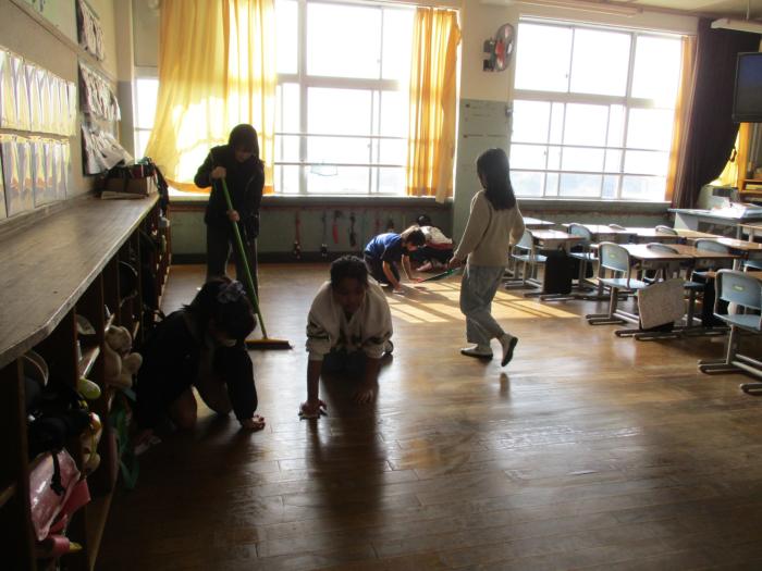 全校児童で冬休みにたまったほこりをきれいに掃除しました。