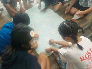 はとのカード 佐世保空襲のことを学んだ6月の平和集会。その時に学んだことや思ったことを、子どもたち一人一人がはとのカードに書き残していました。それを、学級…