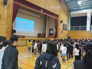 2学期終業式 まず、「いのちを大切にして、3学期に会いましょう。」と子どもたちと約束をしました。次に、児童代表4名の発表がありました。2学期に頑張ったこと…