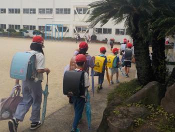 集団下校 災害はいつやってくるかわかりません。急遽、下校することもあるかもしれません。その時に備えて、集団下校を行いました。