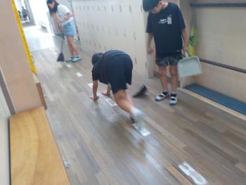 掃除がんばってます いよいよ7月に入りました。今日も、廊下や玄関で熱心に掃除をする子どもたちの様子が見られました。