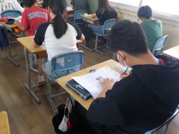 国語のテスト 6年生が、国語のテストを解いていました。これまでの学習のたしかめテストです。どの子も真剣に取り組んでいました。