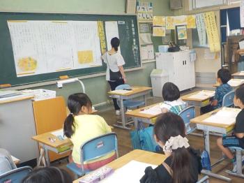 研究授業 全教員が参加しての研究授業を、3年生の教室で行いました。今回の教材は国語の「三年とうげ」でした。3年生の他のクラスが事前授業を行い、それを踏…