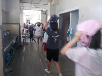 避難訓練 「児童のみなさんは机の下になどに入りましょう。」今回は、地震を想定しての避難訓練でした。まず、放送があった後、机の下に隠れました。そして、次…