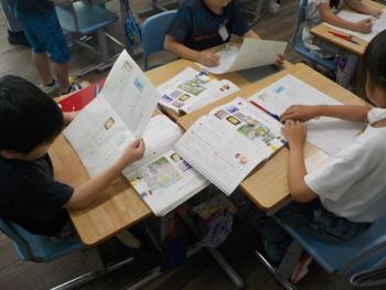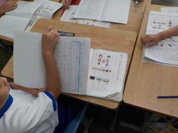 しおり作り 宿泊体験学習のしおり作りに、5年生が取り組んでいました。冊子のようにするために印刷されたプリントを帳合いして、ホッチキスで留めていました。し…