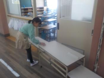 委員会活動が始まりました。保健委員会や給食委員会、園芸委員会など12の委員会に分かれ、それぞれの仕事を行いました。トイレットペーパーの補充をしたり、給食台を拭いたり、学校園のお世話をしたりして熱心に活動していました。