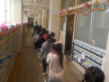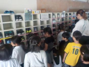 2校時目に、1年生の様子を見に行くと、担任から様々なことを教わっている様子が見られました。廊下の歩き方や挨拶の仕方、雑巾の片付け方や靴の整え方など学校生活を送るうえで大事なことを教わっていました。