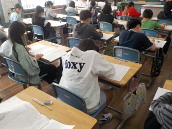 5年生・6年生の教室をのぞくと、学力調査に取り組んでいました。5年生が国語と算数の県学力調査を、6年生が国語と算数、理科の全国学力調査を受けました。どの子も真剣な表情で頑張っていました。
